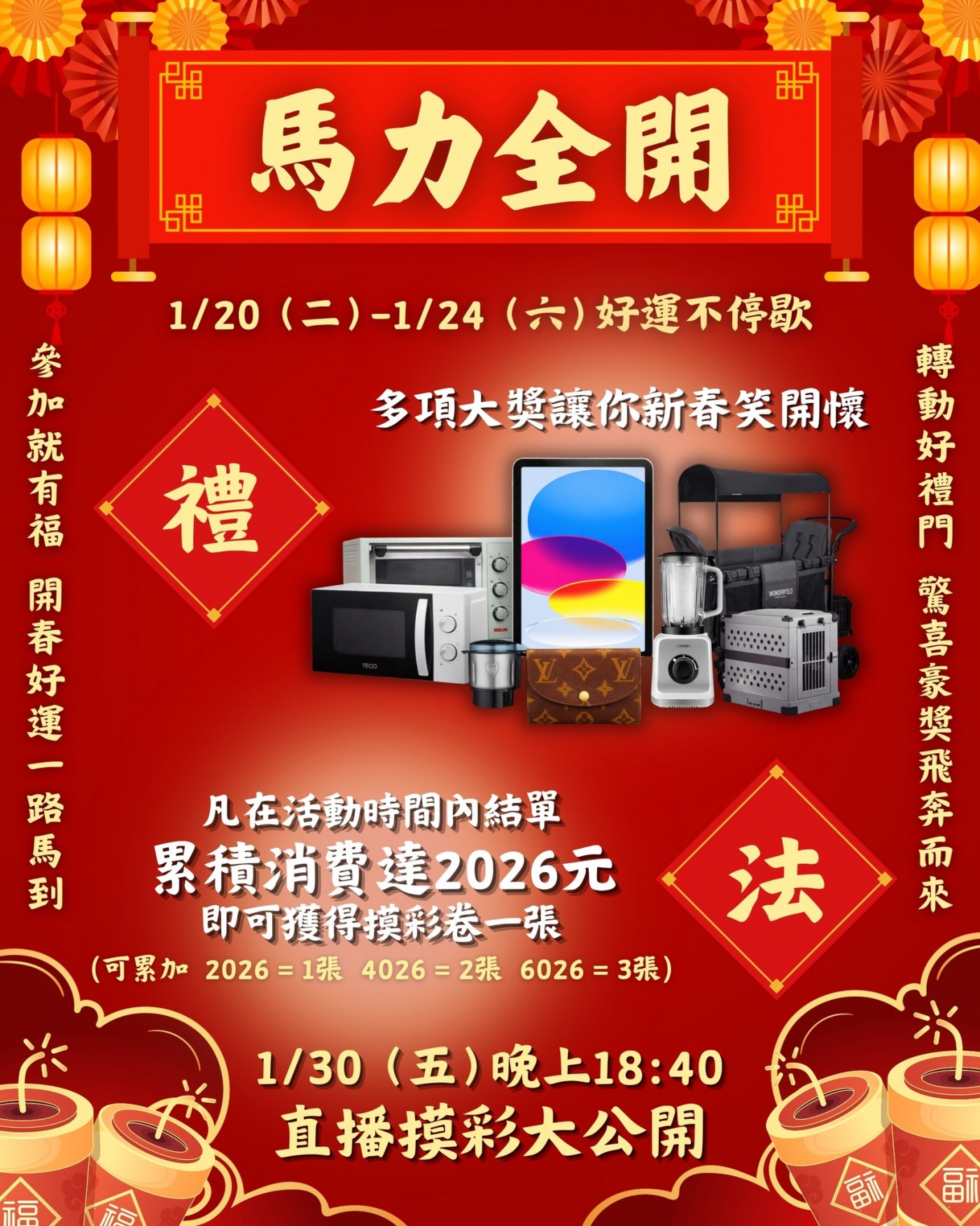 活動期間內累積消費滿 2026 元,即可獲得摸彩券一張 ✨