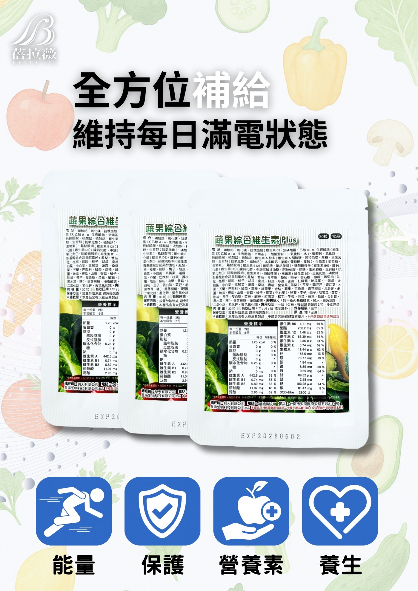 - 多元植化素 × 彩虹飲食概念:將多色蔬果營養整合於一款配方。