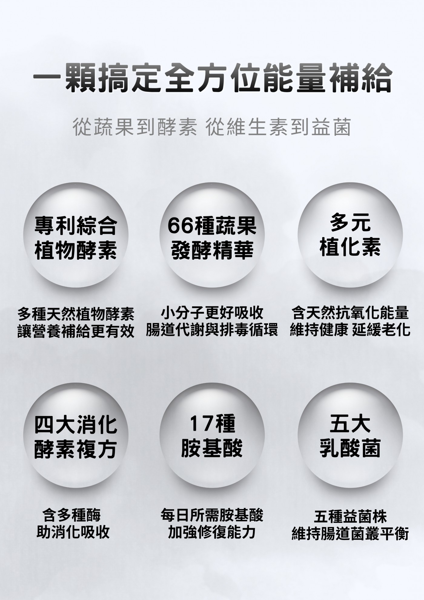 - 66 種蔬果發酵精華:小分子營養概念,適合飲食蔬果攝取不足者補充。