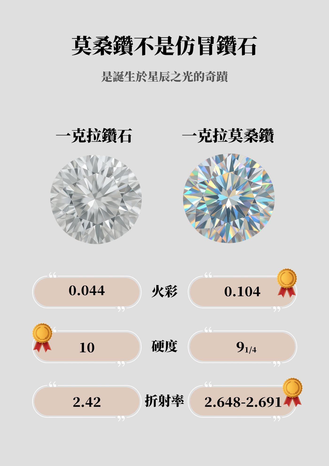 ✨ 高等級莫桑鑽 — 火彩極致、光芒銳利,展現菁英鋒芒