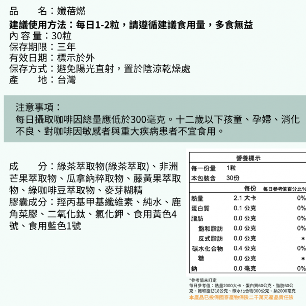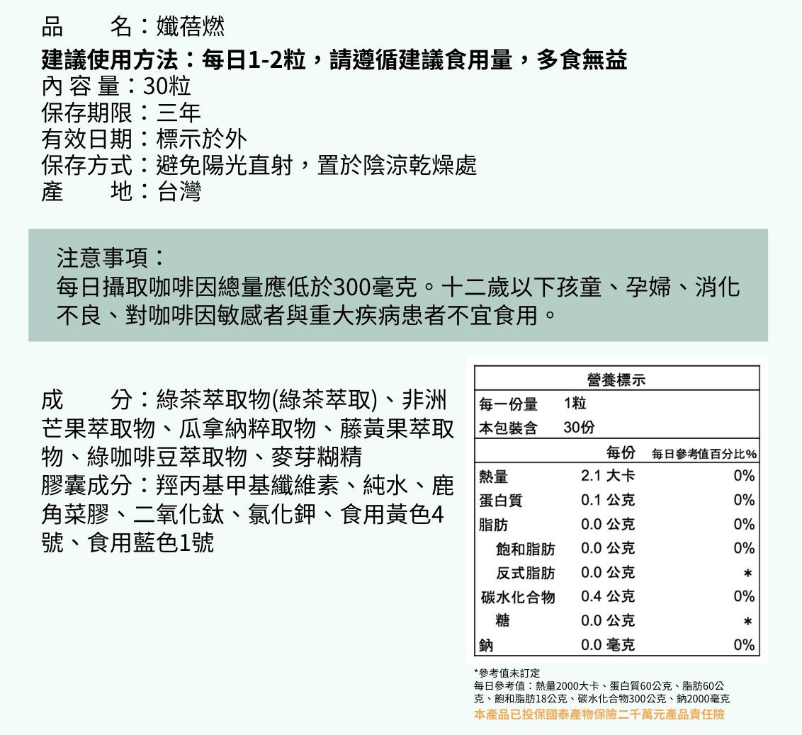 - 多重複方支持:結合多種體態管理常見成分,提供全面支持