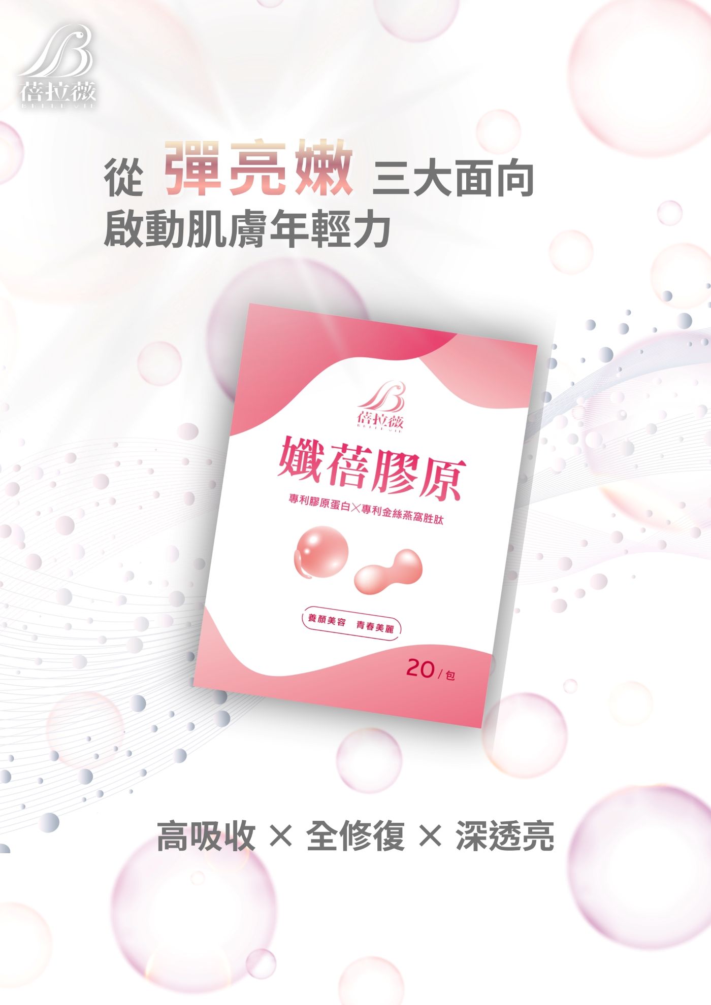 小分子好吸收概念,為維持彈嫩膚況的重要保養元素。