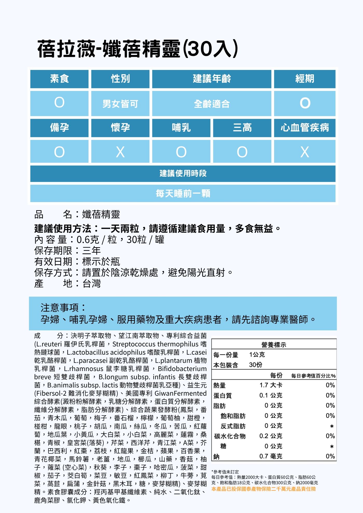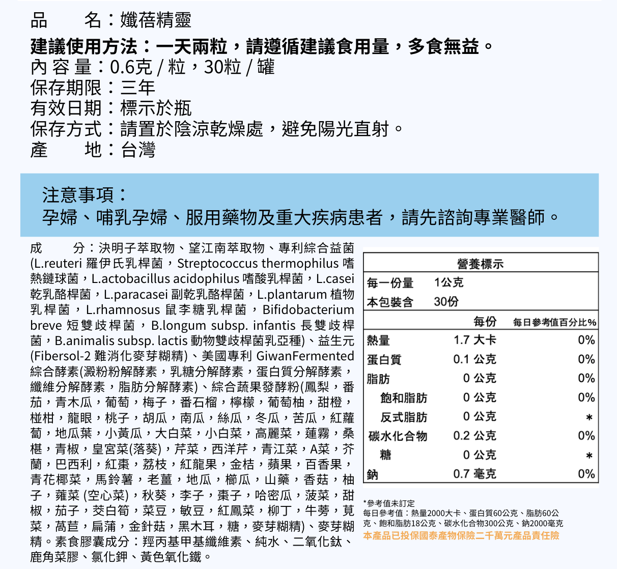 產品容量:每粒0.6克,30粒/罐
