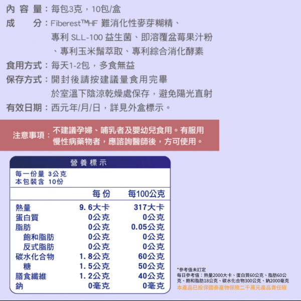 產品容量:每包3克,10包/盒