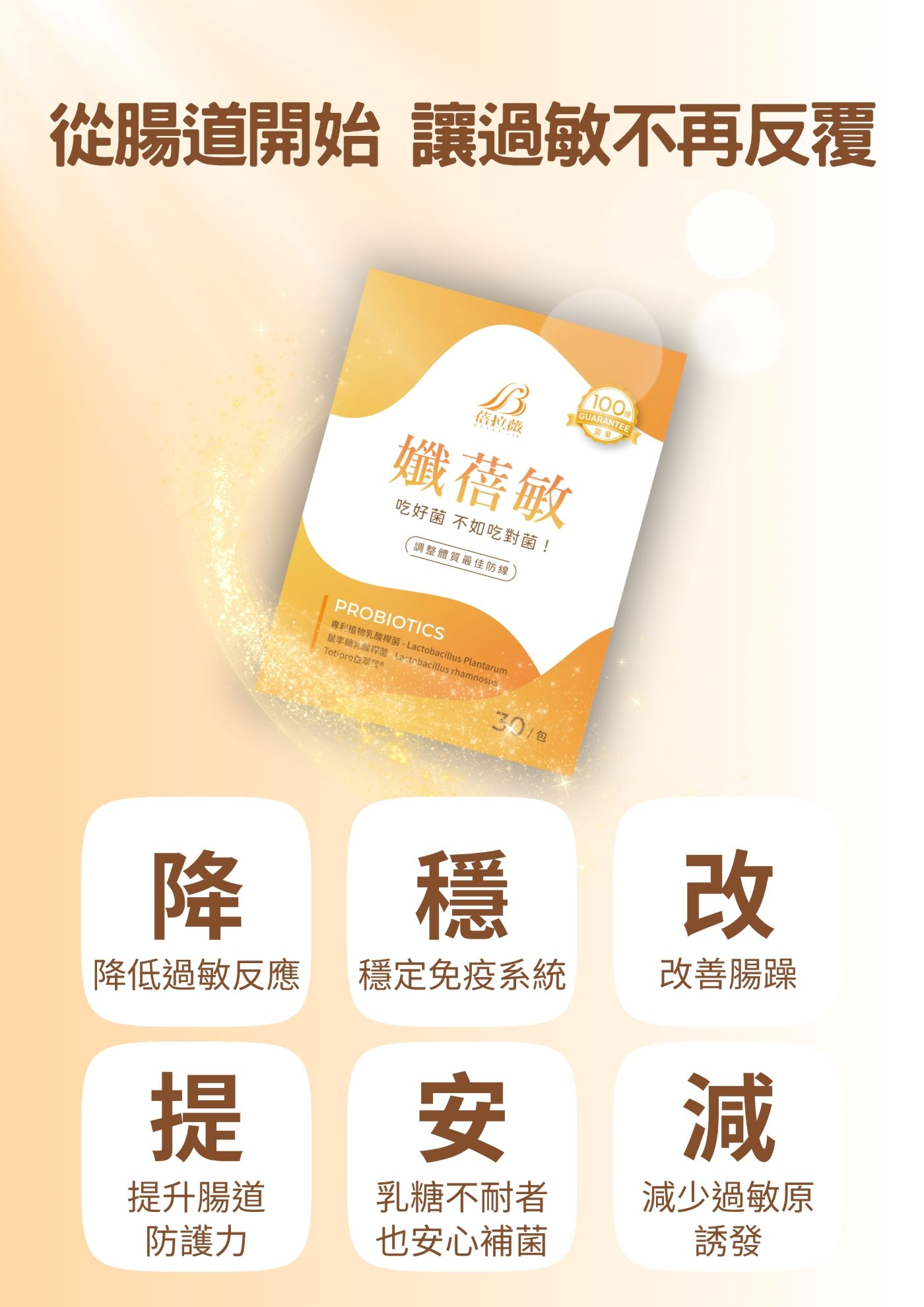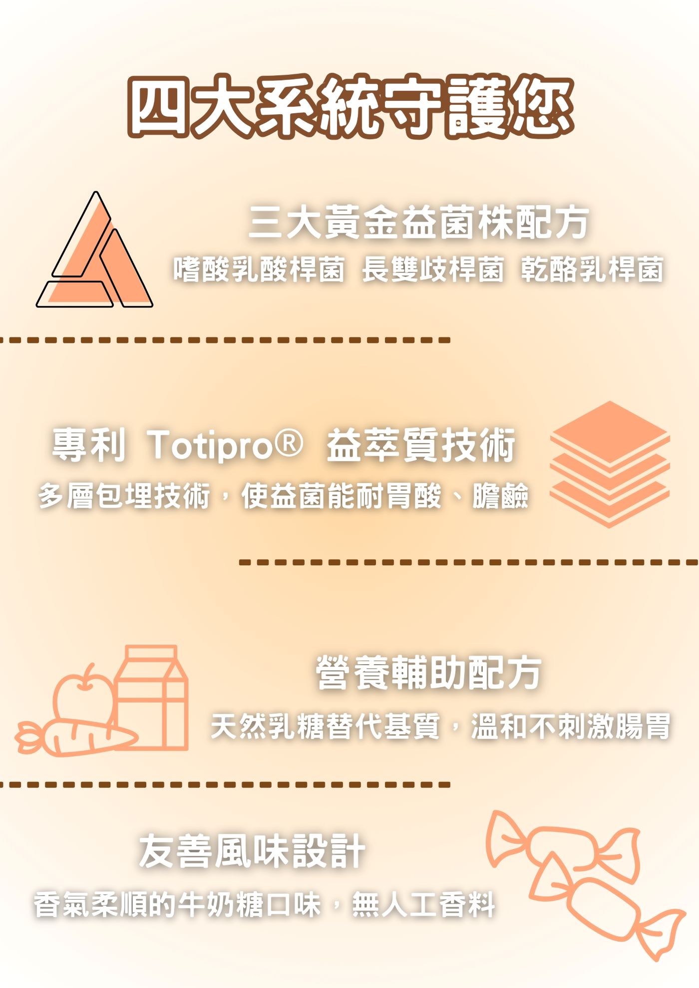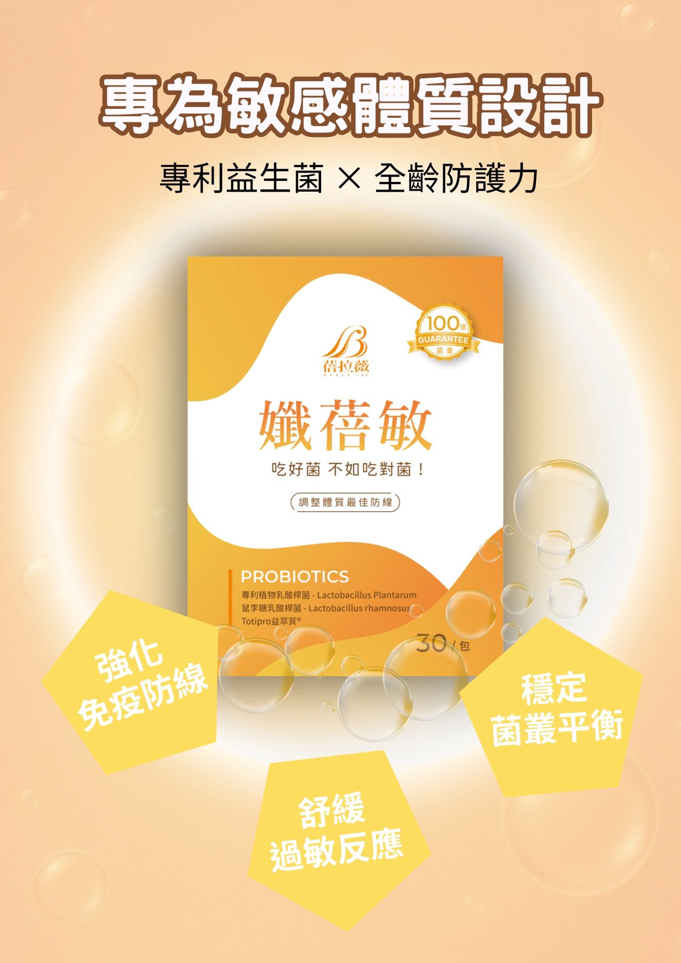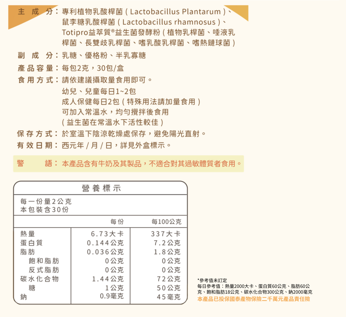 適合時常身體敏感、容易受到環境刺激影響,以及關注自身體質與日常保護力的人。 結合專利雙重好菌搭配 Totipro 益萃質,支持腸道環境平衡,作為每日體質管理的貼心後盾。