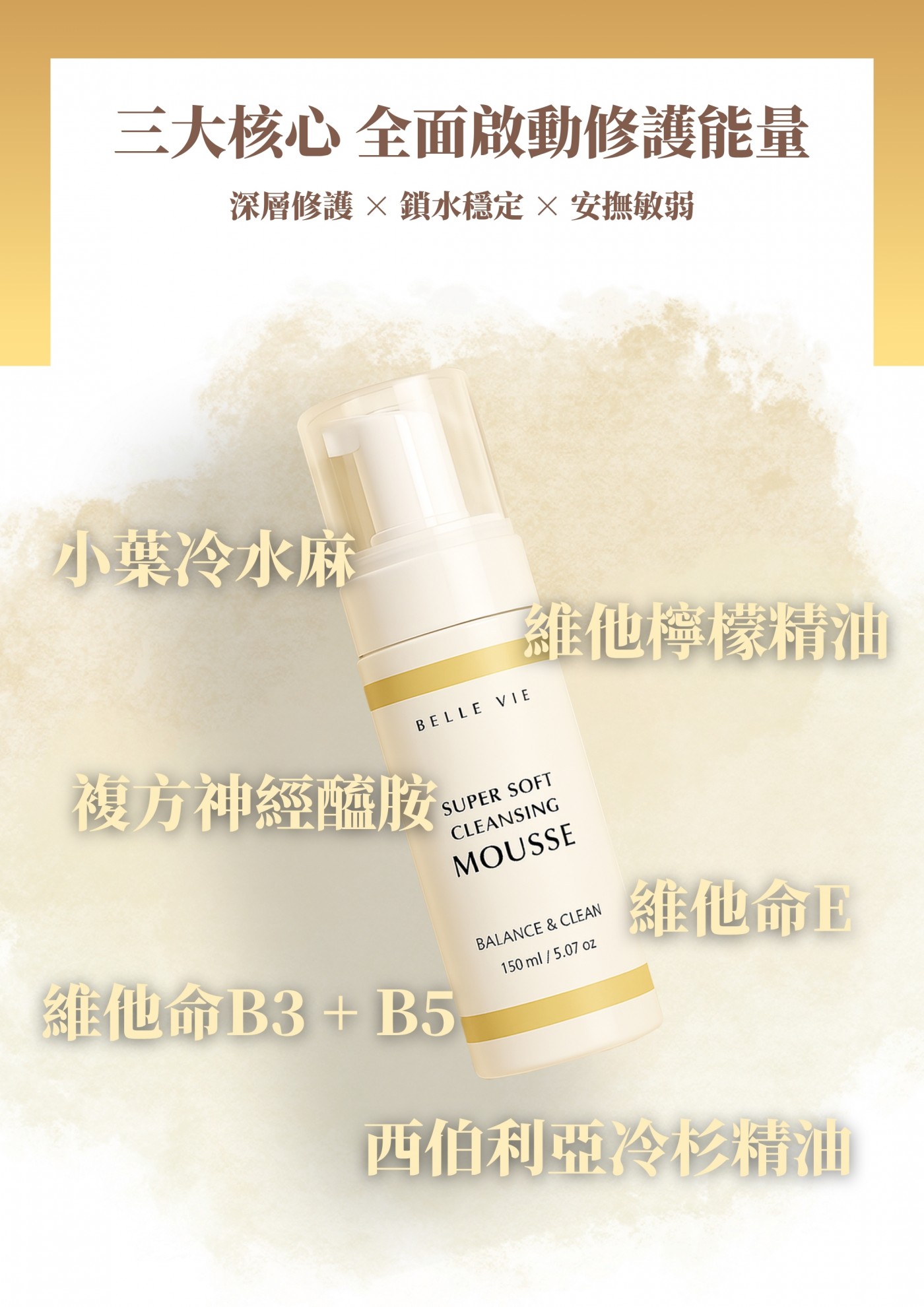 一款結合「溫和清潔 × 修護保濕 × 舒緩穩膚」的高機能潔顏慕斯,適合敏弱肌、乾性肌、油水失衡與日常需要穩定膚況的人使用。