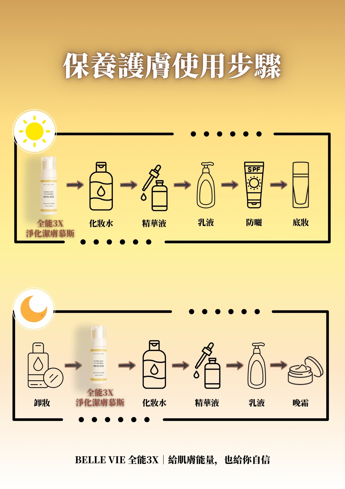 取適量慕斯於掌心或直接覆蓋於臉部。
