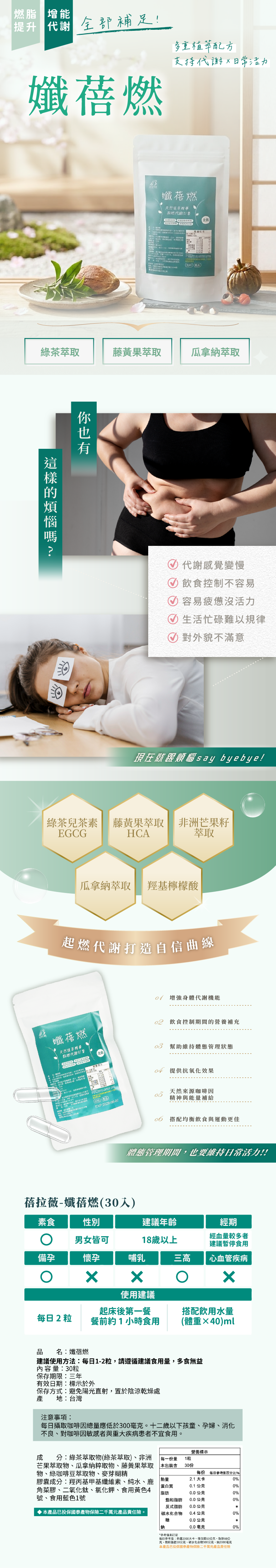 • 多重複方支持:結合多種體態管理常見成分,提供全面支持