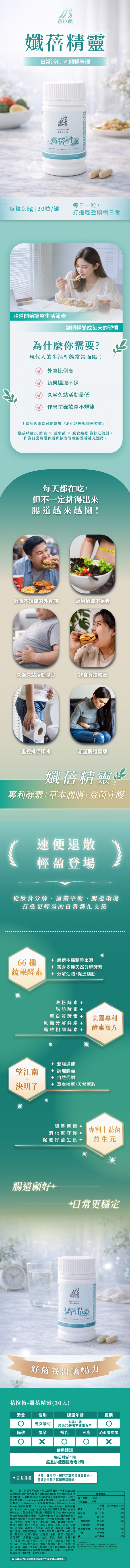 - 多重蔬果酵素(專利 66 種蔬果酵素):日常飲食支持來源,適合外食族與蔬果攝取不足者補充。