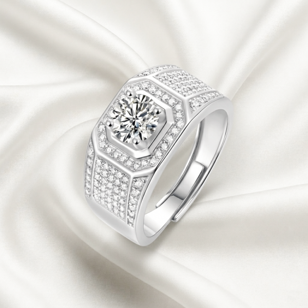 寬版戒身結合立體線條與滿鑽鋪陳,從各個角度都綻放光芒,展現極致奢華與氣場。