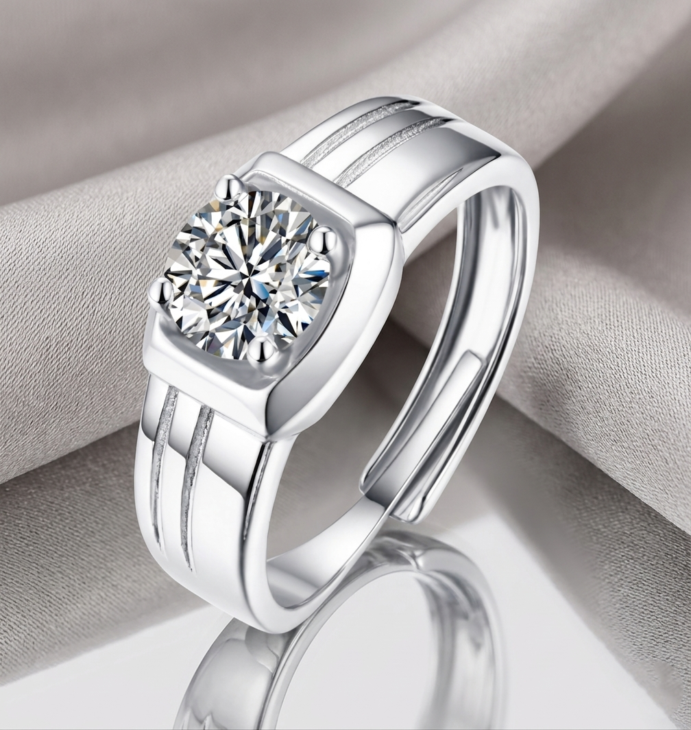 以俐落線條與乾淨輪廓為設計核心,中央主鑽沉穩閃耀,