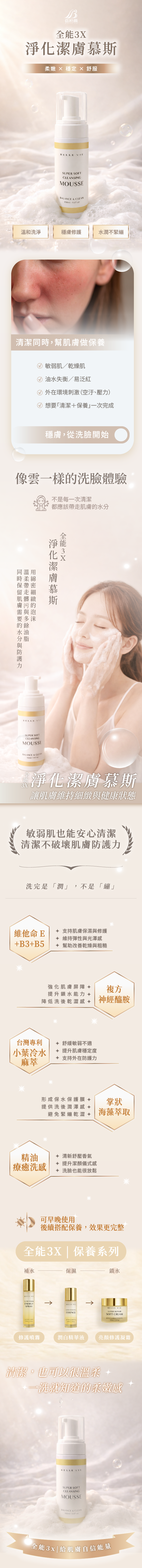 一款結合「溫和清潔 × 修護保濕 × 舒緩穩膚」的高機能潔顏慕斯,適合敏弱肌、乾性肌、油水失衡與日常需要穩定膚況的人使用。