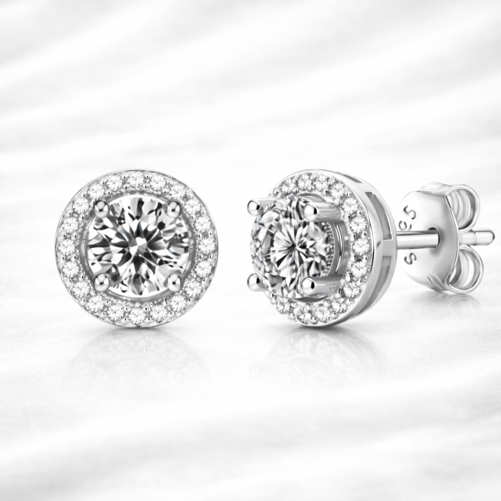 豪華圓包耳釘|Moissan Luxury 莫桑鑽耳環